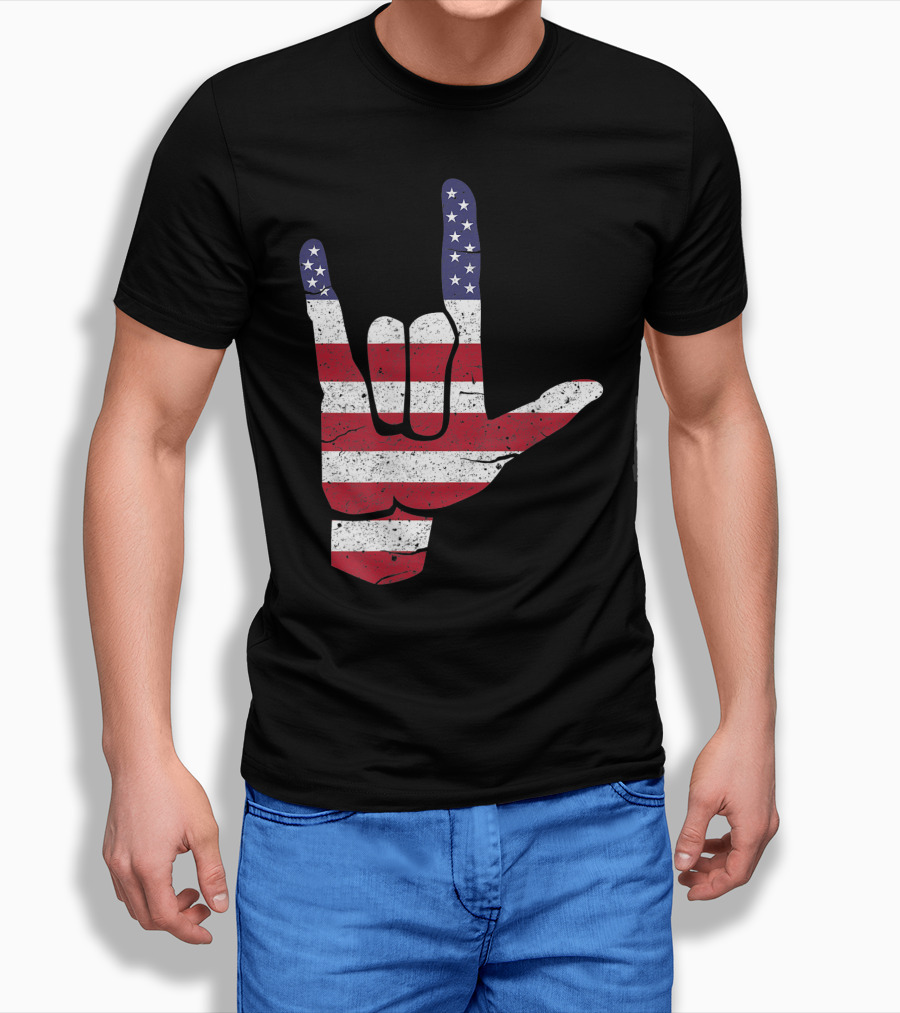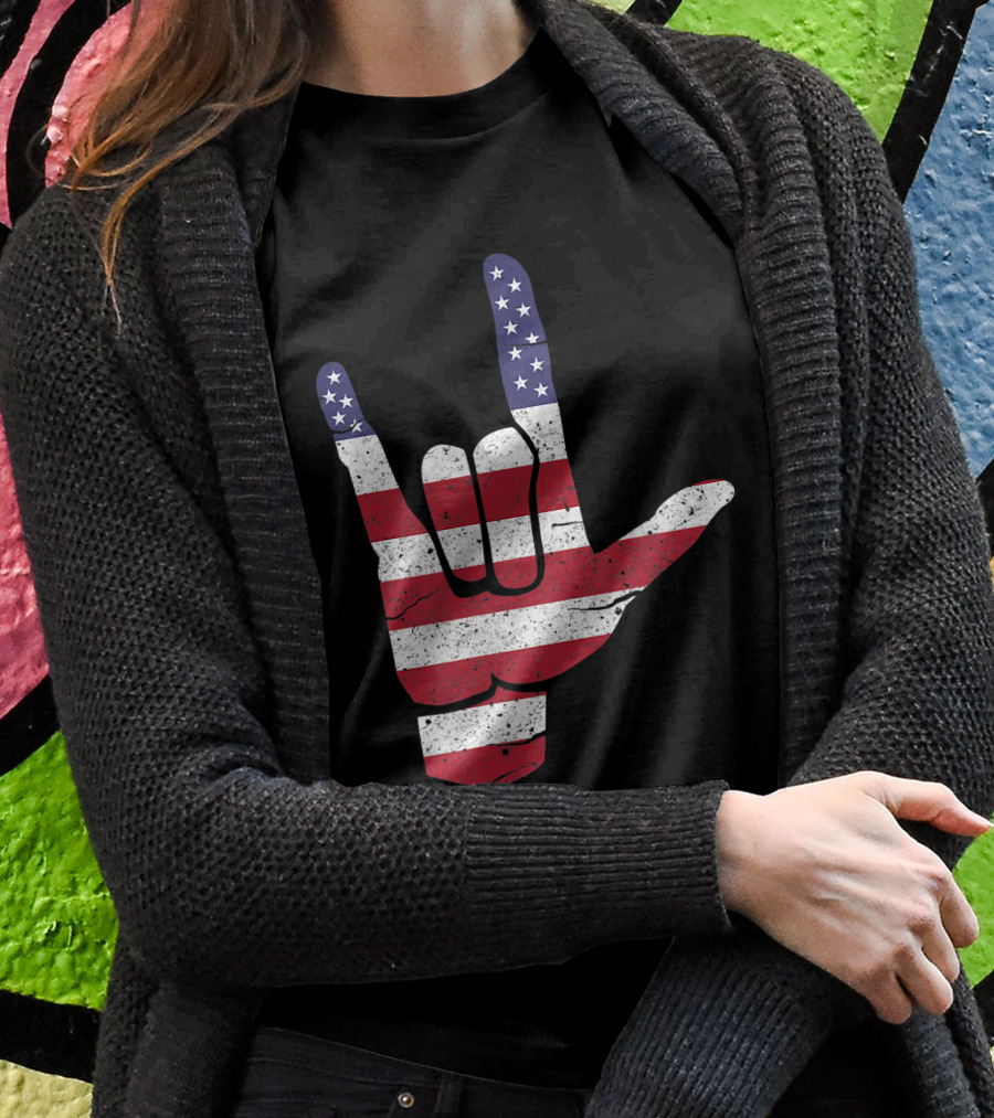 Asl I Love You American Sign Language Usa Flag Hand Gesture Shirt