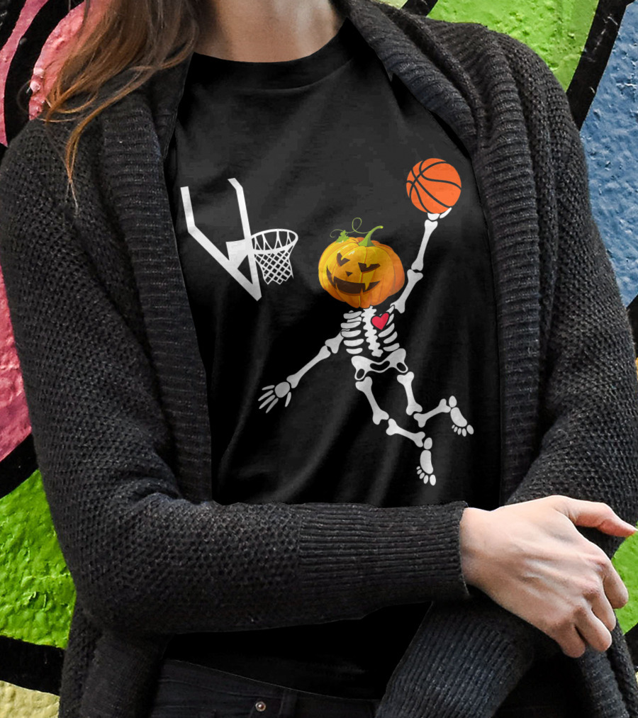 Basketball Skeleton Dunking Pumpkin Head Halloween Spooky Shirt