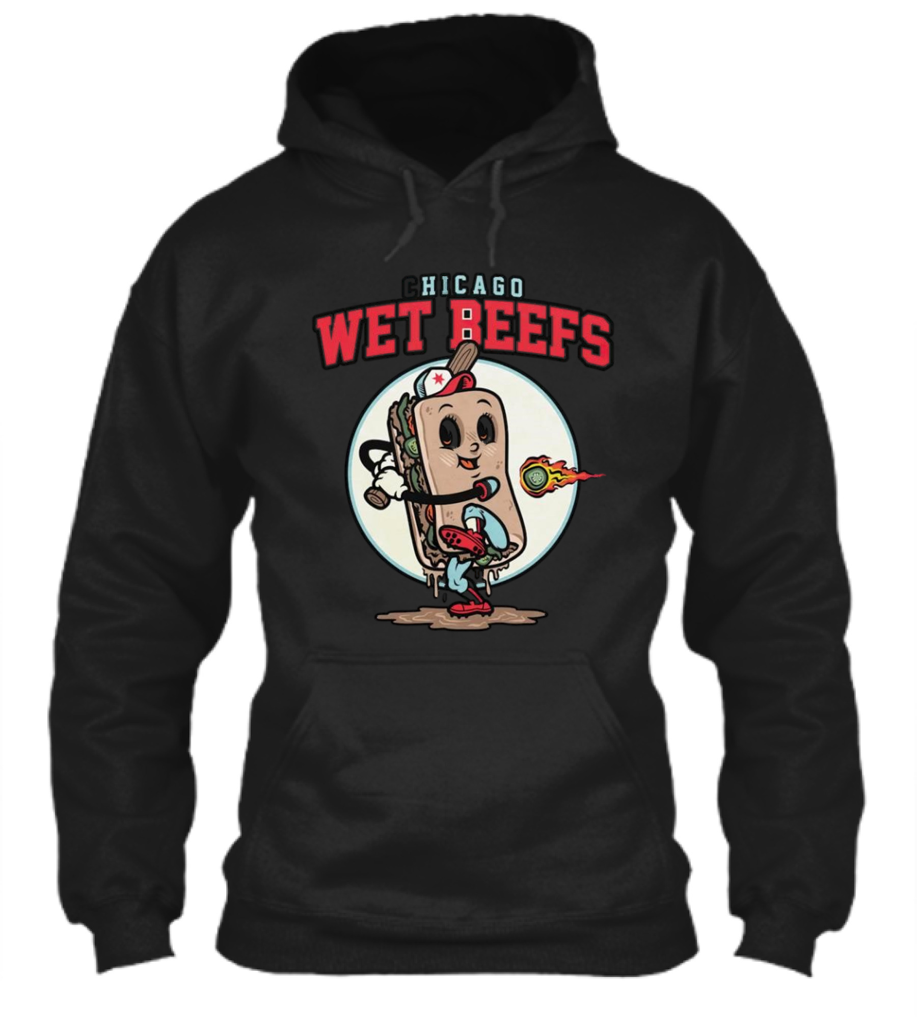 Chicago Wet Beefs Sandwich Character With Baseball Bat And Flaming Baseball Shirt