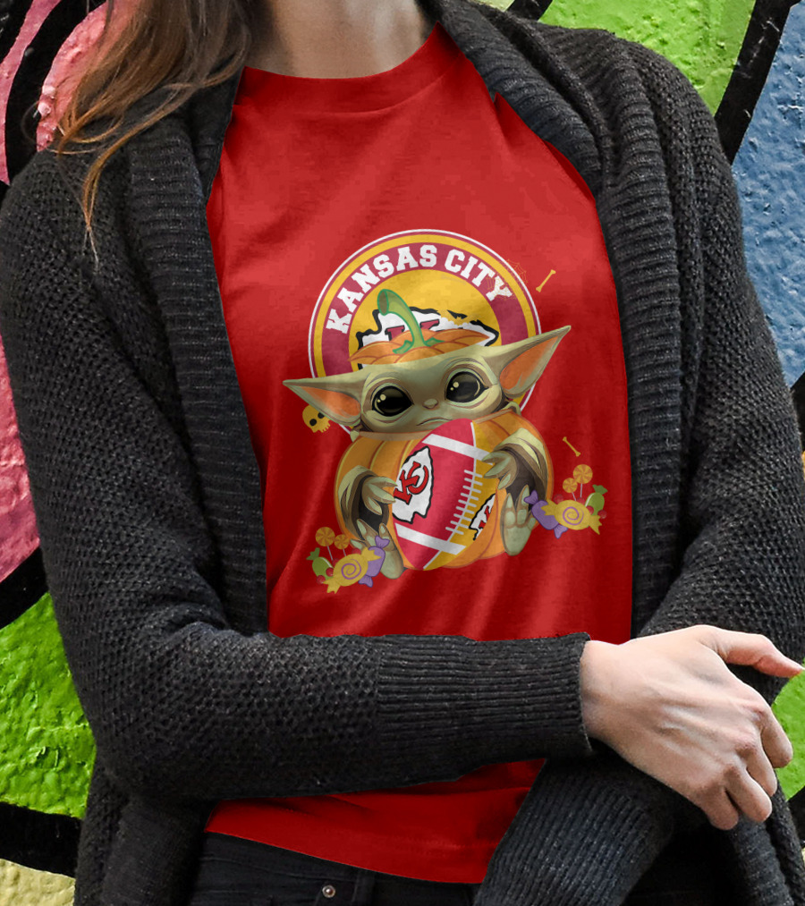 Halloween Pumpkin Baby Yoda Kansas City Chiefs Football Hug Shirt