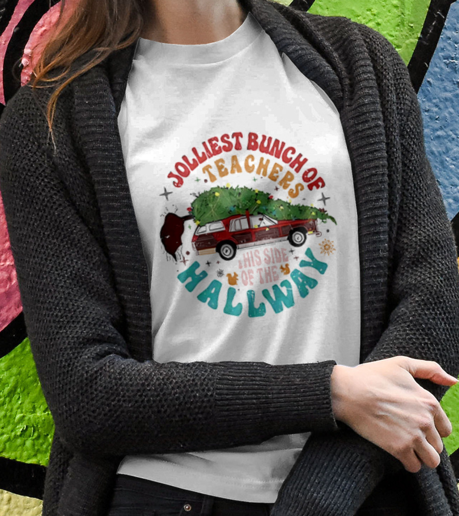 Jolliest Bunch Of Teachers This Side Of The Hallway Christmas Family Car With Tree Shirt