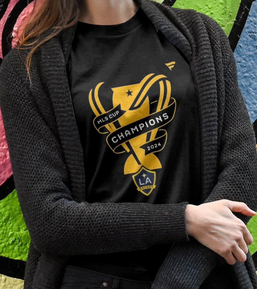 La Galaxy Toddler 2024 Mls Cup Champions Trophy Ribbon Badge Shirt