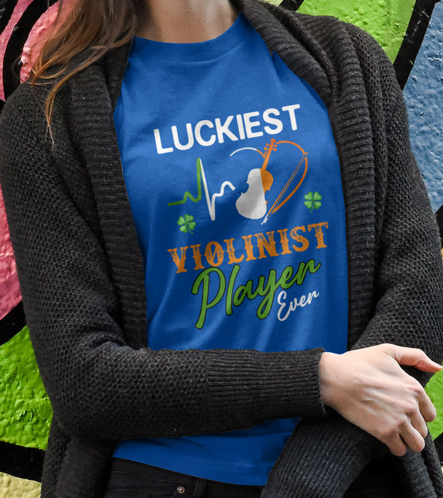 Luckiest Violinist Player Ever Irish Heartbeat Shamrock Shirt