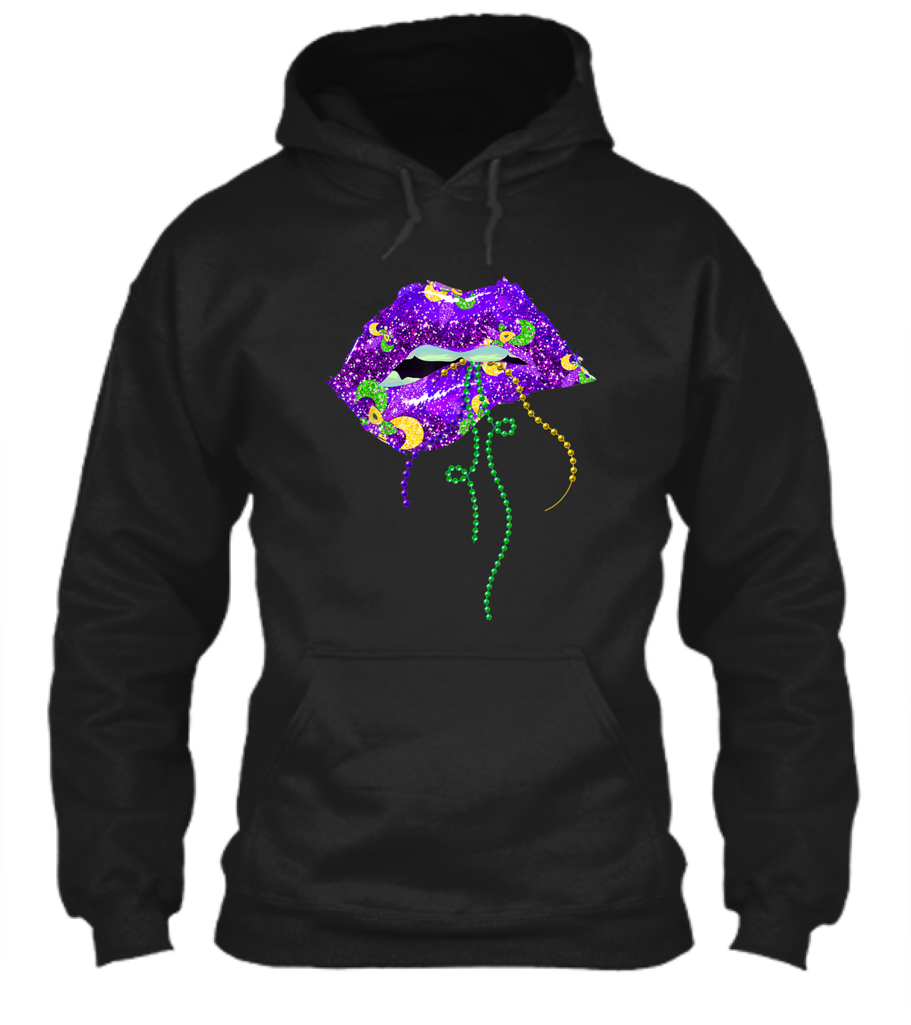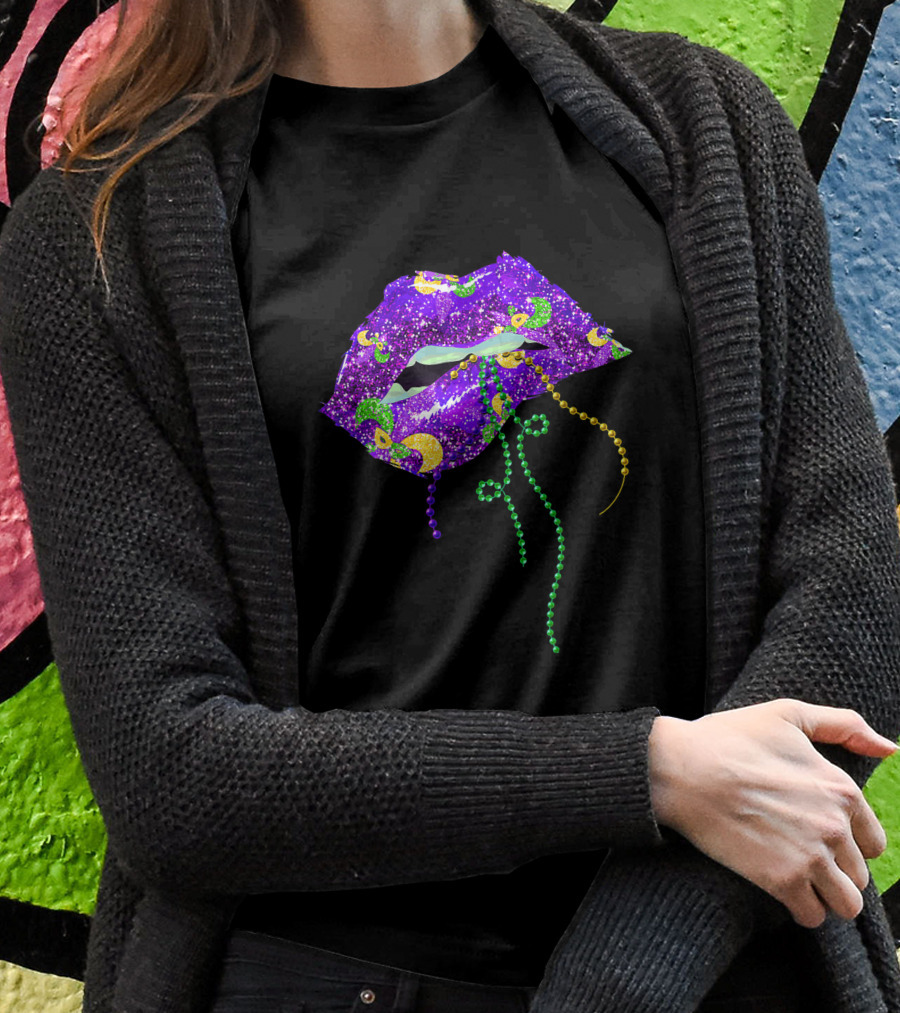 Mardi Gras Sparkling Lips With Beads Queen Carnival Purple Gold Shirt