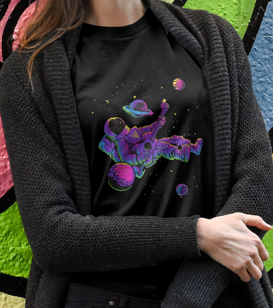 Mile Higher Far Out Astronaut Playing Guitar In Space Among Planets Shirt