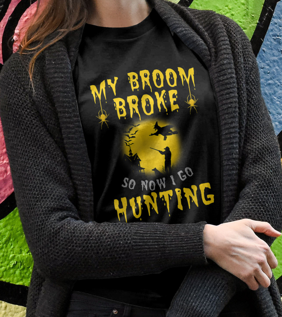 My Broom Broke So Now I Go Hunting Halloween Witch Shirt