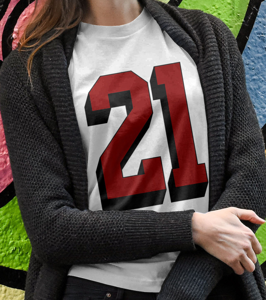 Number 21 Varsity Fan Sports Team White Jersey Premium 21 Shirt