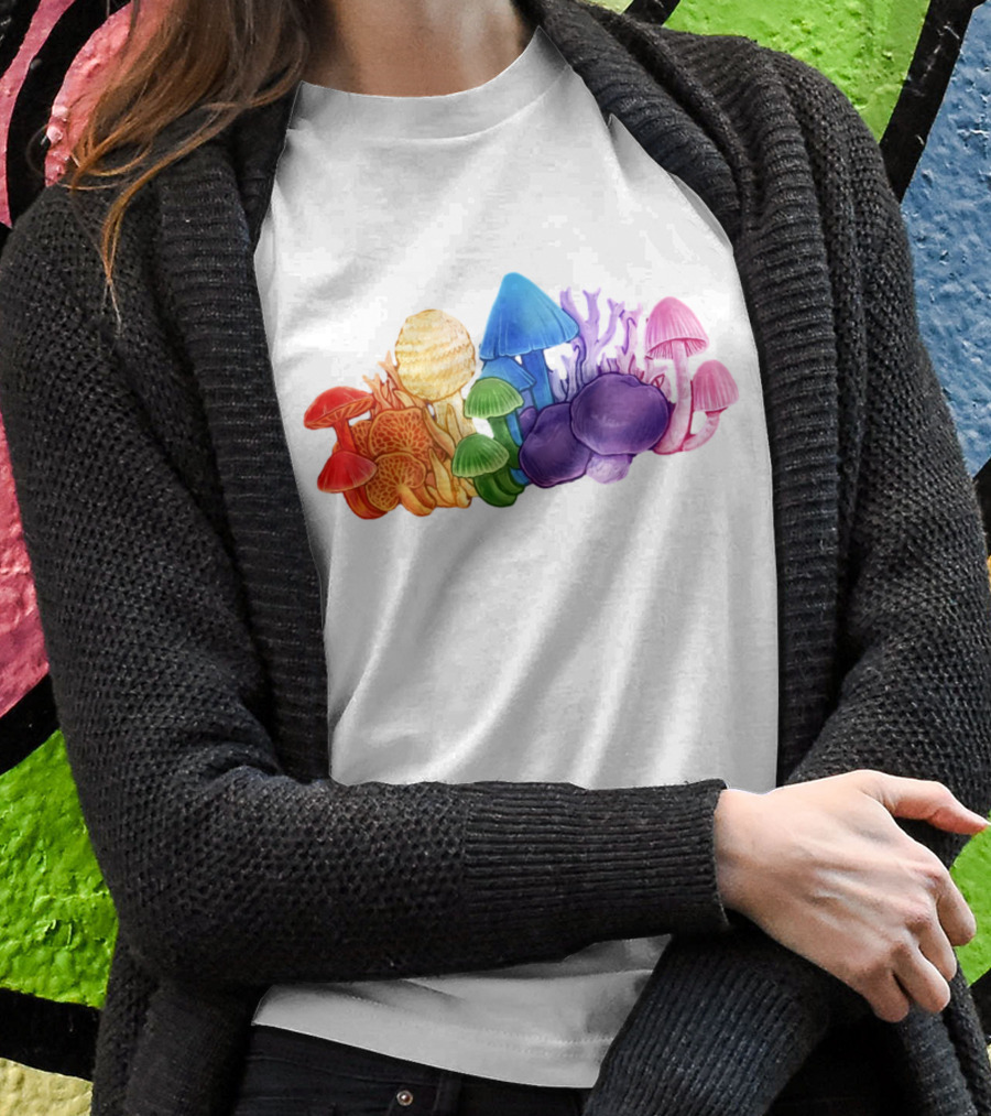 Nz Rainbow Fungi Colorful Mushroom Collection Shirt