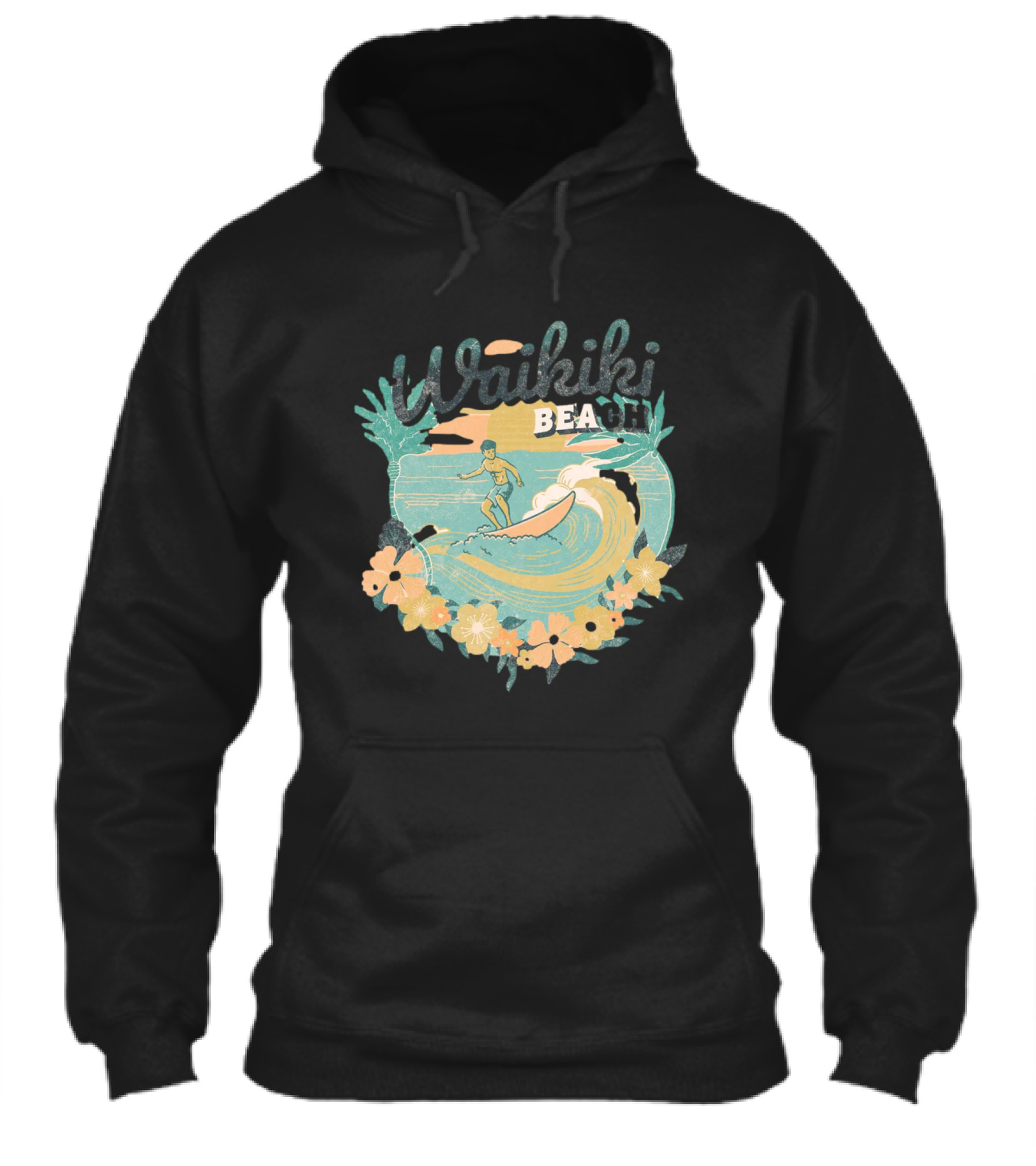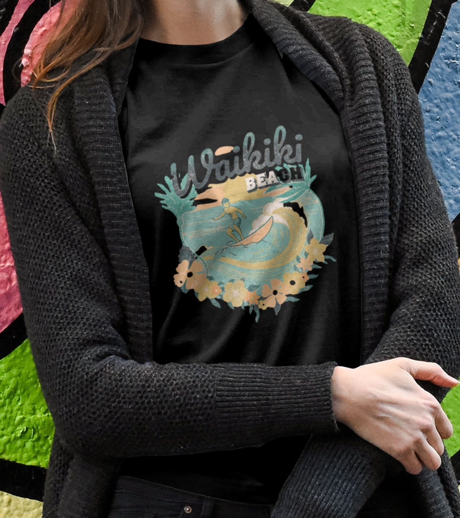 Waikiki Beach Vintage Surfing Adventure Floral Shirt